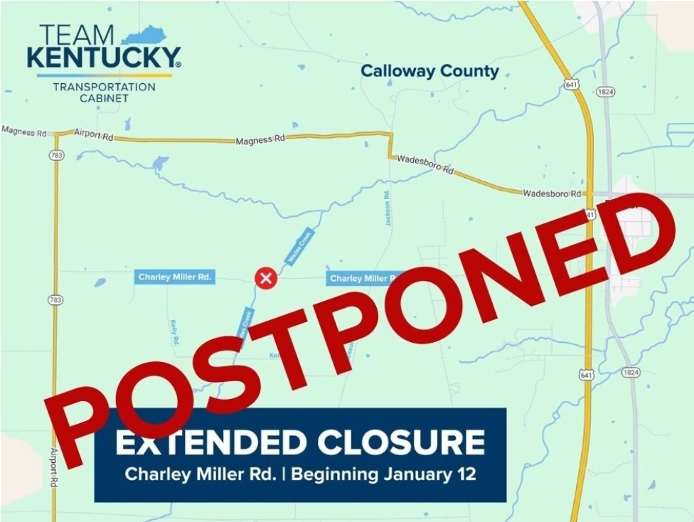 In a Facebook post Monday, Calloway County Judge-Executive Kenny Imes advised constituents that KYTC, without giving prior notice to the county, delayed the project until further notice, and he apologized for the inconvenience.